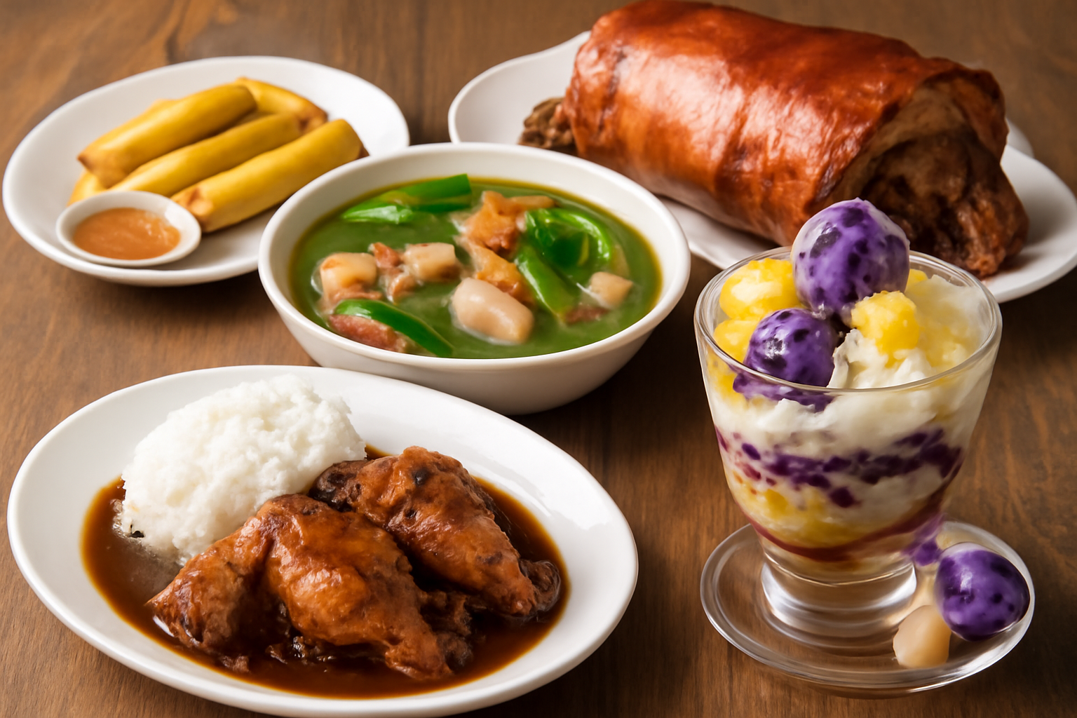 For dessert, Halo-Halo is a perfect sweet treat. This dessert is made from shaved ice mixed with fruits, beans, agar-agar, and coconut milk, topped with a scoop of ice cream. Halo-Halo is a fun and refreshing dessert, perfect for cooling down after a meal.